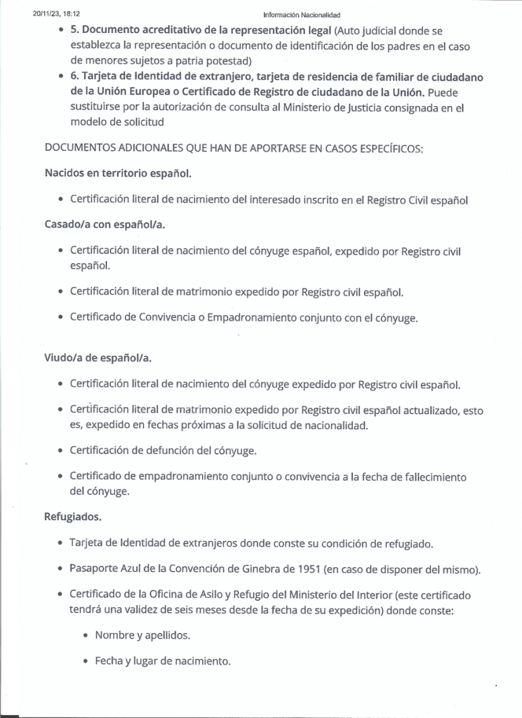 La documentación general son documentos comunes para todos los supuestos, aunque, como veremos a continuación hay exenciones en algunos casos. La base es el listado del Ministerio de Justicia que se puede consultar a través de este enlace ( https://www.mjusticia.gob.es/es/ciudadania/nacionalidad/informacion-nacionalidad ), que, no obstante, lo voy a ampliar con información extra.