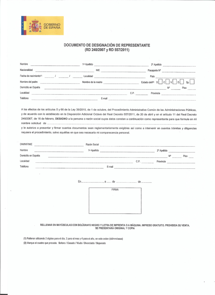 Documento oficial de designación de representante