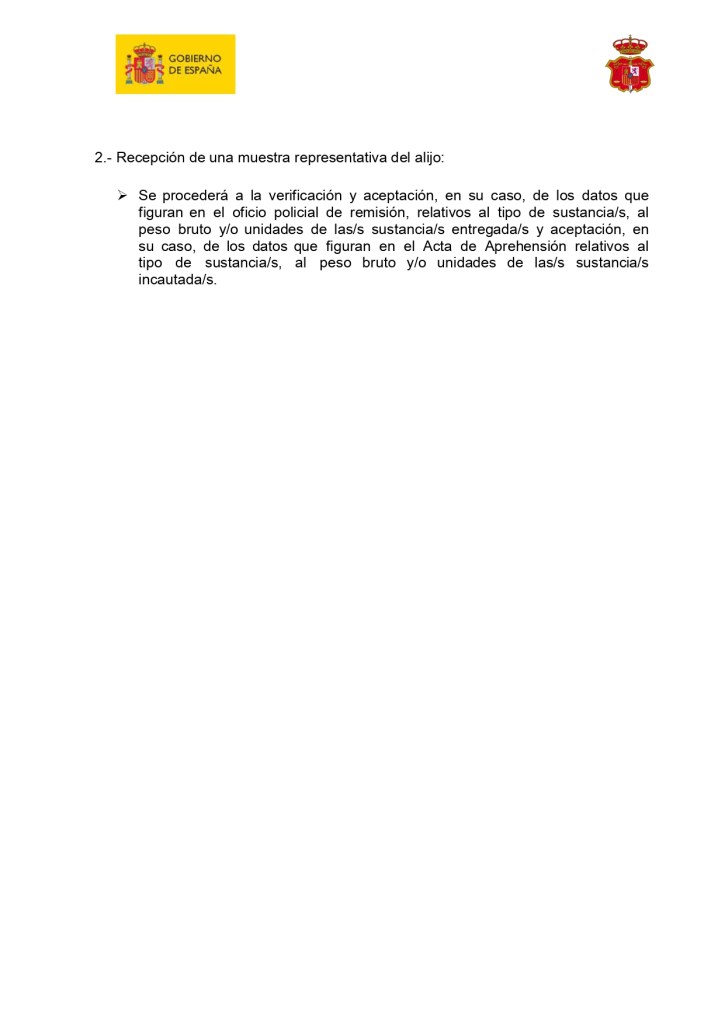 Hay que añadir, que según la “Guía práctica de actuación sobre la aprehensión, análisis, custodia y destrucción de drogas tóxicas, estupefacientes o sustancias psicotrópicas”, del Gobierno de España, que adjunto en la bibliografía, “En el momento de la aprehensión, las Fuerzas y Cuerpos de Seguridad del Estado (FCSE), así como la DAVA, en el ejercicio de las competencias legalmente atribuidas, levantarán el correspondiente Atestado, en el que se incluirá el “Acta de Aprehensión”, con una información detallada relativa al tipo de sustancias incautadas: descripción, numeración, peso bruto o una estimación del mismo reflejando en su caso los criterios empleados, embalaje, origen, características externas, apariencia, fotos, etc.
